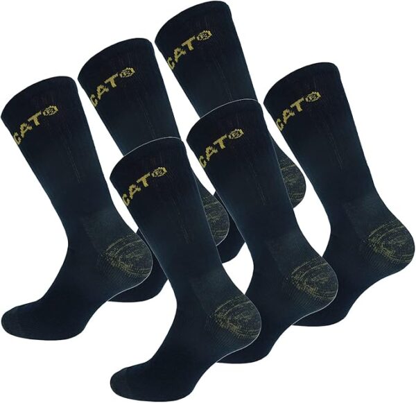 El paquete de 6 pares de calcetines de trabajo para hombre Caterpillar está diseñado para quienes buscan la máxima comodidad y protección durante largas jornadas laborales, especialmente en entornos que requieren el uso de zapatos de seguridad.